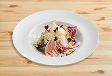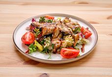200 г • куриное филе, томат черри свежий, микс салатов, сыр твердый, фирменная заправка