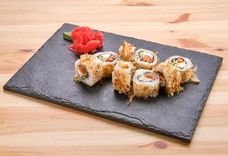 250 г • рис для суши, сыр сливочный, угорь копченый, икра тобико, стружка тунца, нори