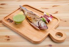 380 г • сибас тушка, лимон, микс салатов, огурец свежий, орегано